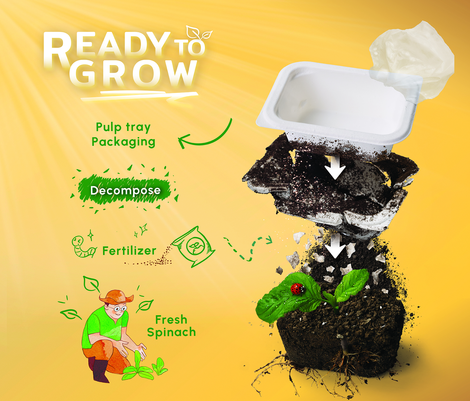 ในด้านดีไซน์ ถาดเยื่อพืชยังคงความเรียบง่ายแบบธรรมชาติ สะท้อนความรับผิดชอบต่อสิ่งแวดล้อม และเปิดโอกาสให้ผู้บริโภคมีส่วนร่วมในการ “เลือกอนาคตที่ยั่งยืน” ผ่านทุกมื้ออาหาร